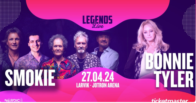 Lørdag 27. April 2024 vil de internasjonale superstjernene Bonnie Tyler og Smokie stå sammen på scenen i Larvik for en uforglemmelig konsertopplevelse.